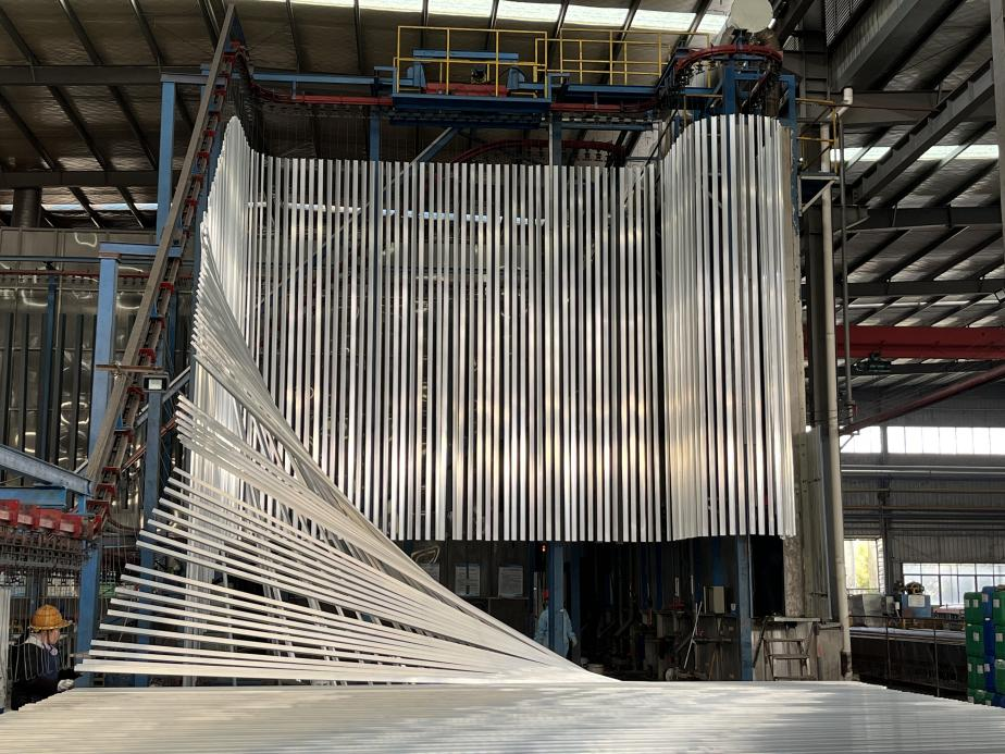 车间收到新的生产任务后,便一道工序接着一道忙碌起来。“我们这个喷漆线是日夜不停的,这一条线一天能产40多吨。”兴进铝业生产经理汪洪波介绍说。