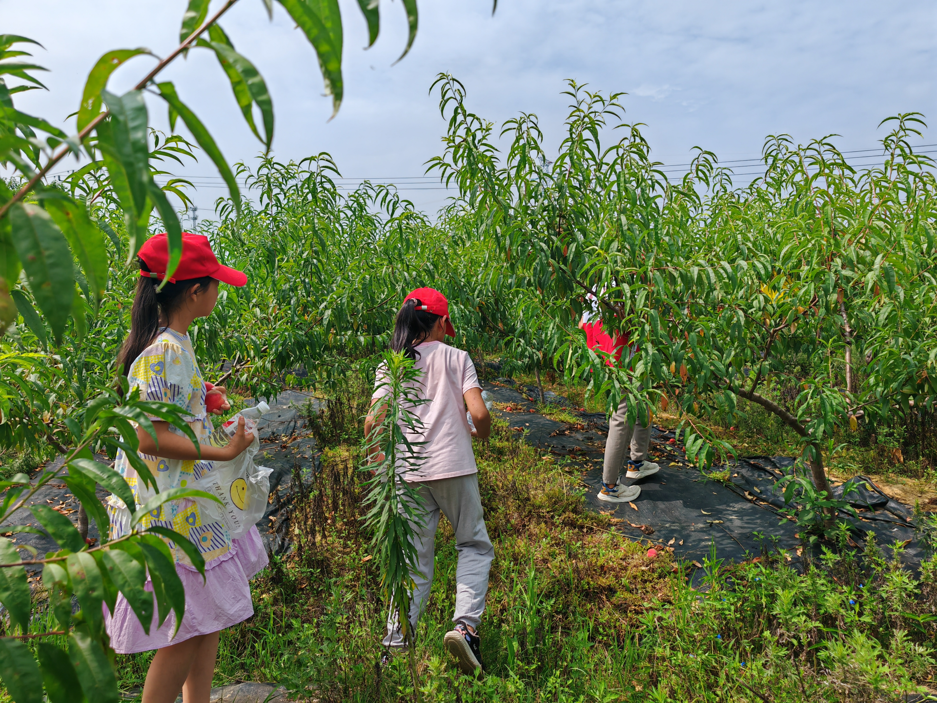 随后,孩子们来到果园,亲手体验采摘的乐趣。在绿意盎然的桃树林中,孩子们小心翼翼地挑选着成熟的桃子,享受着收获的喜悦。这不仅让孩子们感受到了大自然的馈赠,也锻炼了他们的观察能力和动手能力。