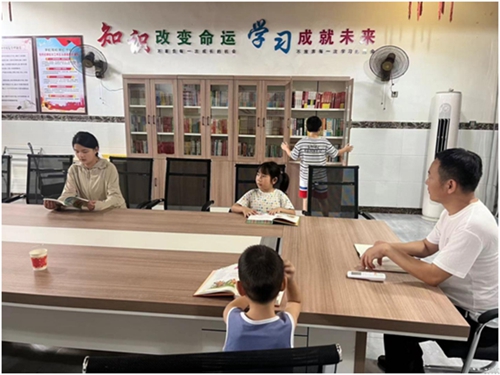 志愿者照看小朋友看书