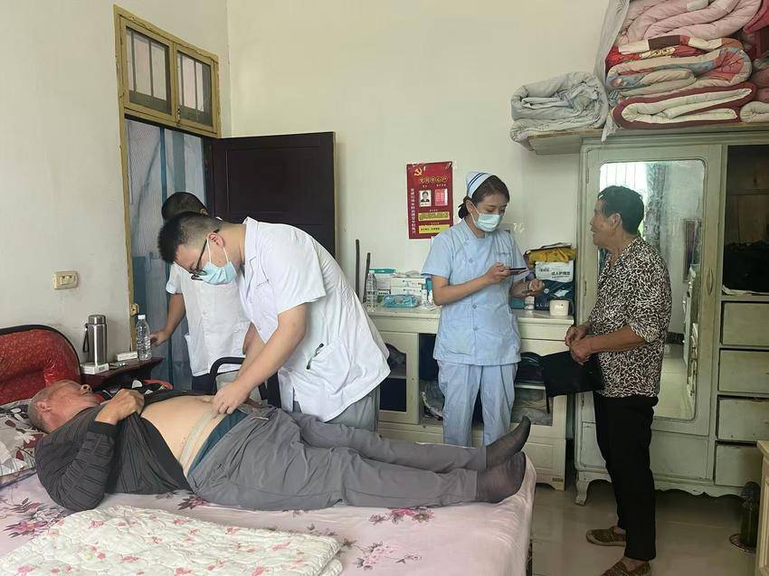 在新畈村1组,75岁的皮爹爹同样感受到了家庭医生签约带来的便利与关怀。他曾因乙状结肠部分切除术留有造口,需要每周定期进行护理。然而,因为与老伴相依为命、子女不在身边,这就让他每次前往医院换药都成为一道难题。还地桥中心卫生院的外科护士长和吴医生将皮爹爹的困难记在心上,主动上门,提供了贴心周到的免费造口换药服务。专业的操作、亲切的关怀,极大地减轻了老人的奔波之苦,也让远方的子女得以安心。