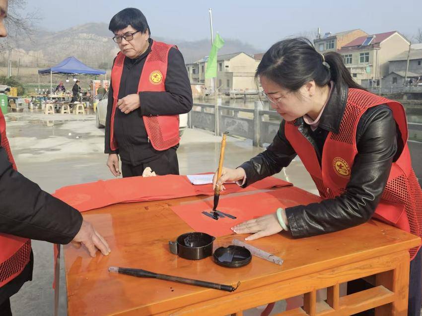 活动现场,书法家与爱好者们挥毫疾书,一副副寓意吉祥的春联在笔尖流淌。火红的联纸映照着村民的笑脸,领取春联的队伍中洋溢着浓浓年味。而在崭新的文化活动中心外,同样暖意融融,村民们围坐在一起,畅谈家乡变化,共话未来发展。大家从新落成的活动中心聊到村里的环境改善,从传统文化的传承说到村湾发展的前景,言语间满是对美好生活的向往与对家园建设的热情。