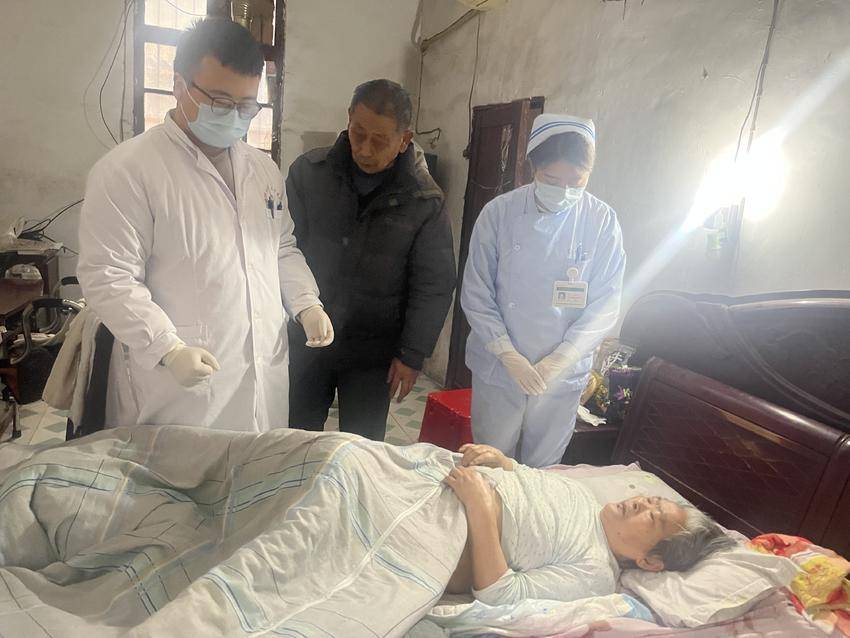 节后上班第一天,还桥村七旬老人胡爹爹打来求助电话。他的老伴徐奶奶75岁,患有严重精神障碍,是健康扶贫重点关注对象。1月26日她因“左股骨转子间粉碎性骨折”接受手术,2月13日出院,但术后需定期换药。面对两位高龄老人行动不便、就医困难的现实,胡爹爹在节后第一天向卫生院求助。