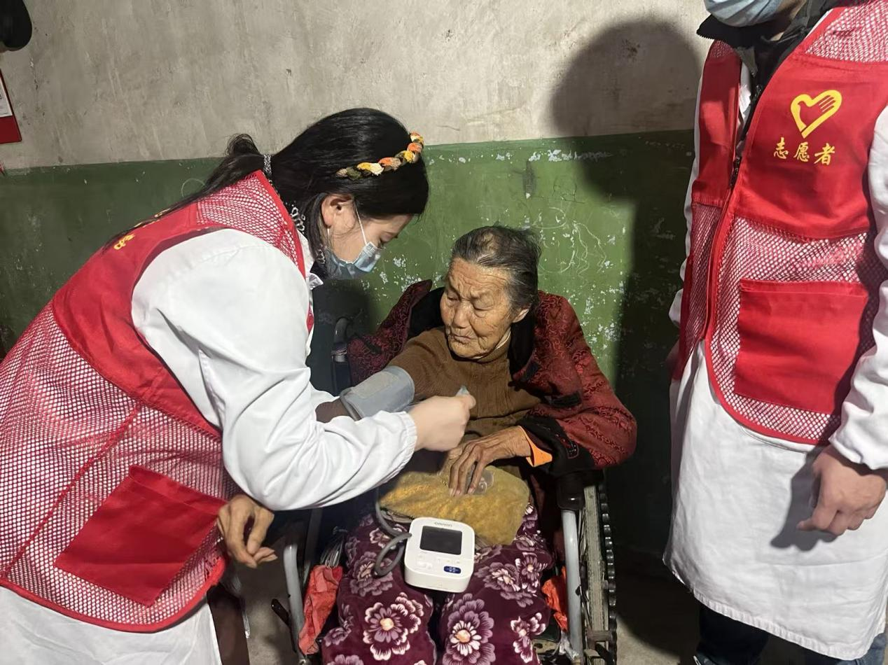 义诊结束后,在村干部引导下,市级专家与卫生院党员先锋队共同走访了3户失能老人家庭,细致检查身体状况,现场测量血压血糖,并结合病情给予用药指导。康复医学科专家江文冲还手把手指导家属开展日常护理与肢体康复训练,将温暖关怀送到群众“心坎上”。