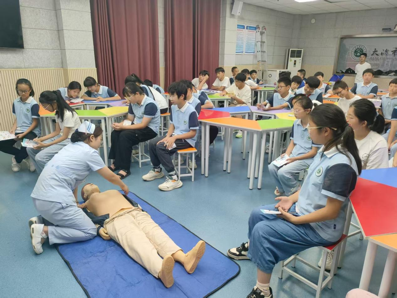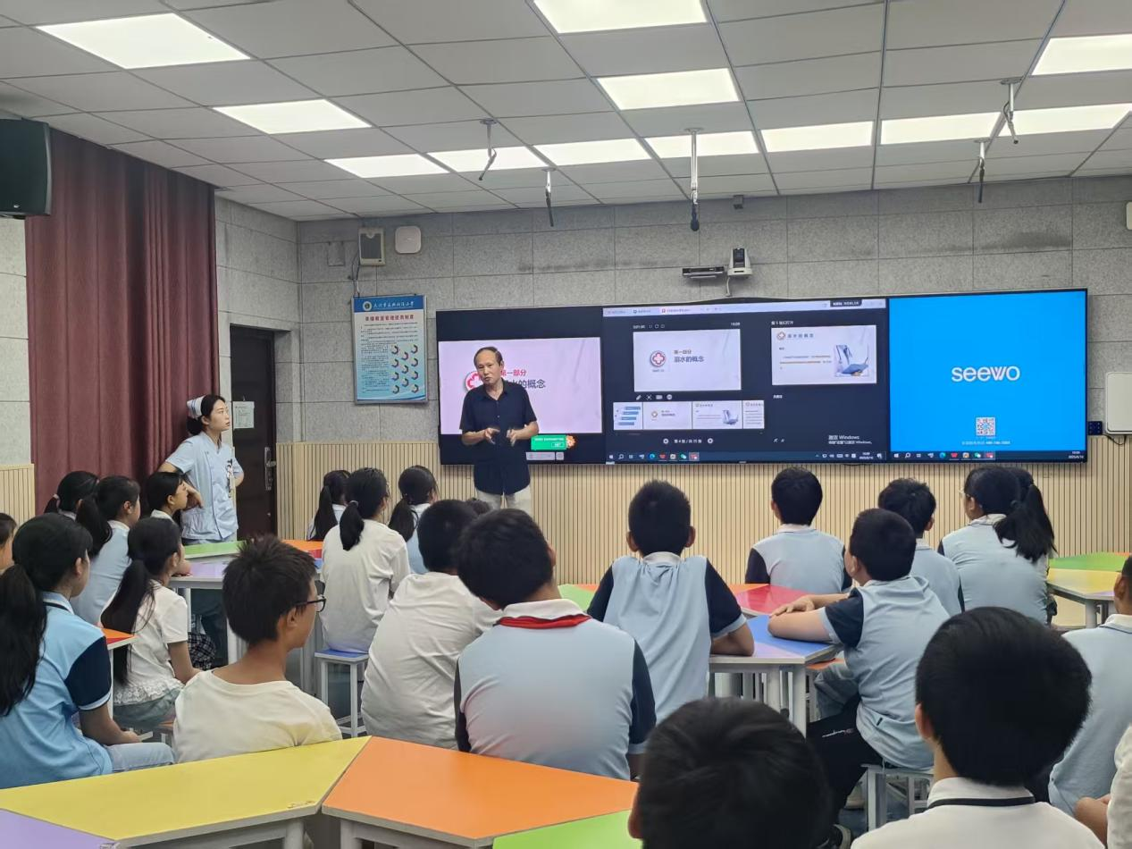 在急救知识讲解环节,柯尊营详细介绍溺水者临床表现的快速识别要点、岸上急救黄金原则,重点讲解心肺复苏(CPR)关键步骤与自动体外除颤器(AED)应用常识。医护人员现场模拟 “黄金 4 分钟” 救援场景,直观展示急救流程。柯尊营还特别纠正公众急救误区,指出 “倒挂控水” 等传统做法的无效性与潜在风险,强调及时进行有效心肺复苏的重要性。讲座通过互动问答与模型演示,引导学生积极参与,让 “远离危险水域、智慧施救、正确报警” 等安全理念深入人心。